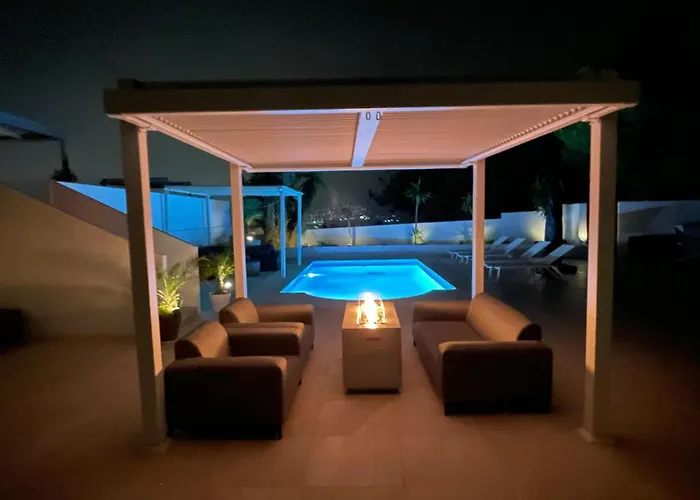 Malaga lufthavn kan man nå på 25 minutter i bil. Gæster kan dykke ind i en privat pool.